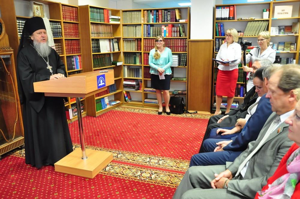 В завершение мероприятия его участникам представили выставку "Духовных книг божественная мудрость" из фонда старопечатных и редких изданий Президентской библиотеки Республики Беларусь и выставку православного художника Сергея Писаренко и других художников из картинной галереи города Светлогорска./ sobor.by/