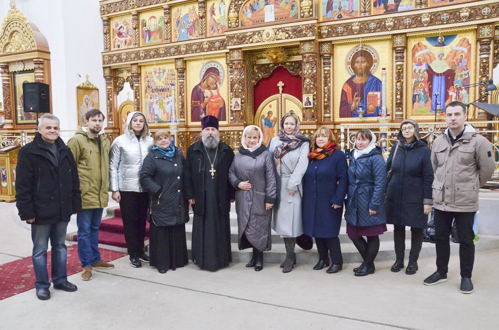 Гостей встретили настоятель прихода протоиерей Игорь Коростелёв и руководитель Социальных мастерских, кандидат психологических наук Марина Кравцова. Настоятель рассказал об основании и жизни прихода, о строительстве соборного Радосте-Скорбященского храма и ознакомил с деятельностью Социальных мастерских. К слову, в Мастерские часто приходят педагоги, работающие в классах духовно-нравственной направленности. Особенно полезны такие экскурсии для учителей, работающих в интегрированных классах, где вместе со здоровыми школьниками учатся ребята с ограниченными возможностями.