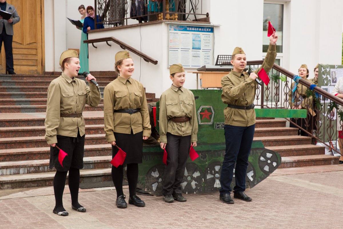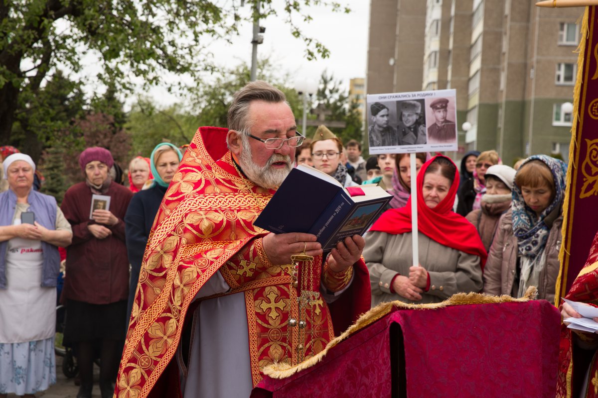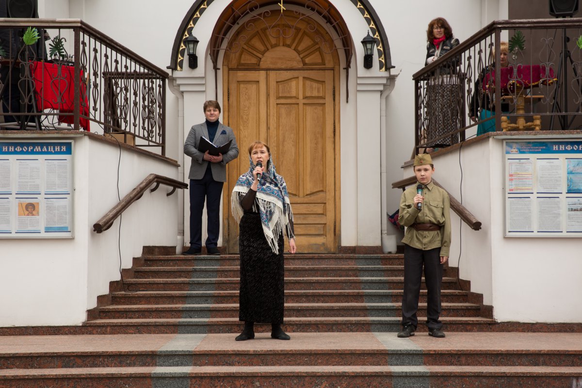 | 14 МАЯ 2019 (Вторник) 15:05:08 Духовно-просветительский проект Дни православной культуры "Память" организовал 9 мая приход святой праведной Софии Слуцкой. Акция проходила по благословению митрополита Минского и Заславского Павла, Патриаршего Экзарха всея Беларуси.После Божественной литургии 9 мая прошёл крестный ход, на котором верующие несли портреты своих дедов и отцов, воевавших в годы Великой Отечественной войны. Под колокольный звон и пение молитв прихожане поминали своих героев. Как оказалось, у всех в семьях были родные и близкие, прошедшие через войну. У Поклонного креста у храма была отслужена лития с сугубым поминовением воинов, отдавших жизнь за Отечество. После богослужения, перед церковью на импровизированной сцене начался концерт. Начало мероприятия благословил настоятель Свято-Софийского храма протоиерей Анатолий Мозолевский. С проповедью выступил священник Александр Бойко. Приведём несколько цитат из торжественной части концерта: - В нашей стране нет ни одной семьи, которой не коснулась эта война. Семь мирных десятилетий стали возможными благодаря подвигу нашего народа в борьбе с фашизмом. За это время сменилось поколение белорусов. Но остаётся память народа об ужасах войны и величайшем счастье Победы. На фронтах войны и в тылу приближали Победу люди разных национальностей. Наш проект посвящён дружбе между народами, которая привела к массовым подвигам офицеров и солдат на фронтах Великой Отечественной войны. Этот проект не изменит мир и историю человечества, но он сохранит в нашей памяти события такими, какими они были на самом деле. Мы - потомки победителей, и мы не дадим переписать историю Великой Отечественной войны. В ходе концерта ведущими были представлены "христианские параллели Великой Победы": "Великая Отечественная война 1941-1945 годов – крупнейшая в мировой истории война. Для нашей страны она началась в день Всех святых, в земле Российской просиявших. Тяжелейшие бои за Берлин пришлись на окончание Великого Поста. В Лазареву субботу, 28 апреля, была взята известная своими пытками берлинская тюрьма "Моабит". 28 апреля советские войска вышли к центру Берлина, а 29 апреля, в праздник Входа Господня в Иерусалим, приступили к штурму Рейхстага. Тогда же на разных фронтах началась капитуляция немецких войск, занимавших оборону против союзников. Предпасхальным вечером 5 мая начальник штаба союзников Смит передал немецкому представителю Фридебургу требование генерала Эйзенхауэра о повсеместной капитуляции как на западе, так и на востоке. Пасха 1945 года пришлась на 6 мая, когда празднуется день великомученика Георгия Победоносца. Церковью святой воин был прославлен как "пленных свободитель и нищих защититель, немощствующих врач, царей поборниче". В освобождённом за неделю до того концлагере Дахау пасхальное богослужение по памяти совершали греческие и сербские священники, надевшие самодельные облачения на свои полосатые робы… Тем временем немецкое командование начало переговоры о полной капитуляции. В ночь на Светлый понедельник в Реймсе акт был подписан. Через двое суток по требованию советского командования он был продублирован в Берлине с участием официального представителя СССР маршала Георгия Жукова. День Победы праздновался в Светлую среду, в день памяти святых, на Синайской горе подвизавшихся". 