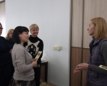 Руководитель минских мастерских кандидат психологических наук Марина Кравцова, лауреат премии «За духовное возрождение», подробно рассказала слушателям семинара о работе людей с ограничениями, о сложностях, с которыми пришлось столкнуться, о психологических особенностях людей с инвалидностью и дала практические рекомендации коллегам. Затем участникам семинара было предложено разделиться на группы и самостоятельно ознакомиться с работой швейного, свечного и столярно-слесарного отделов.