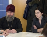 Завершением практического занятия стала встреча с настоятелем прихода протоиереем Игорем Коростелёвым. Отец Игорь рассказал об истории и современной жизни Центра духовного просвещения и социального служения Белорусского Экзархата, о многовекторной работе прихода, подробно остановившись на социальной деятельности и мастерских для людей с ограничениями. Настоятель подчеркнул, что отличительной особенностью приходских мастерских является их направленность на разностороннее развитие людей с инвалидностью.