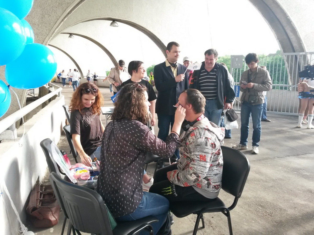 В перерыве между периодами каждый желающий смог поиграть в настольный хоккей, фотографировались в окружении фанатов и поучаствовать в приготовленных для болельщиков конкурсах. Все желающие также могли нанести аквагрим на лицо, многие с радостью воспользовались такой возможностью – нанести на щёки логотип любимого клуба.