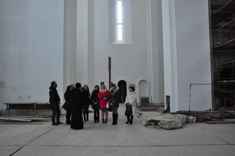 Как отметила руководитель группы старший преподаватель, кандидат педагогических наук Жанна Романова, студенты сами выразили желание посетить приход, посмотреть строящийся собор и узнать о работе церковной библиотеки.