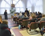 "В рамках преподаваемых в университете дисциплин нашим будущим библиотекарям необходимо познакомиться с лучшими библиотеками Минска, чтобы они понимали специфику работы разных библиотек. Библиотека, которую мы посещаем с удовольствием - это библиотека храма иконы "Всех скорбящих Радость", - рассказала старший преподаватель кафедры теории и истории информационно-документных коммуникаций Жанна Романова.