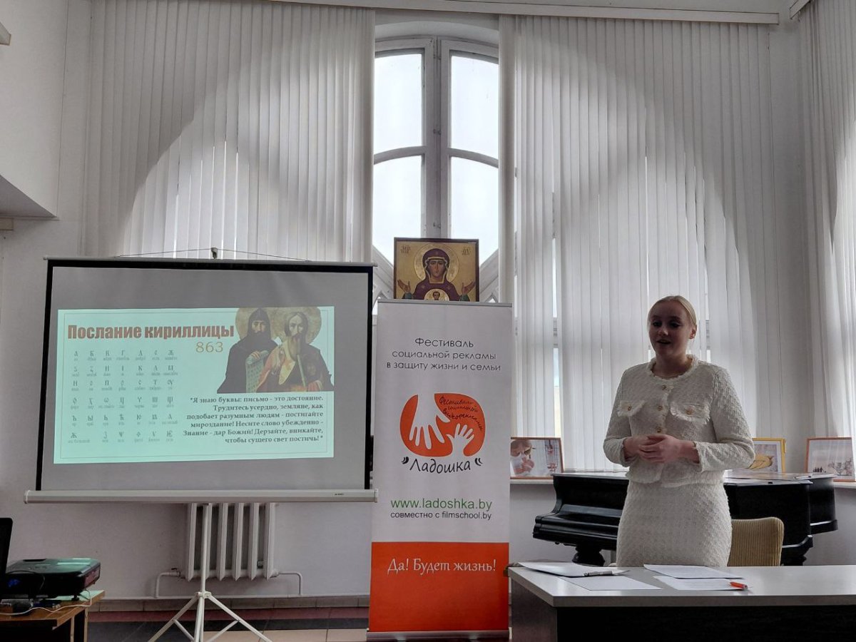 Затем состоялась встреча протоиерея Игоря Коростелева ,настоятеля прихода храма в честь иконы Божией Матери “Всех скорбящих Радость”, духовника Международного фестиваля социальной рекламы в защиту жизни и семьи “Ладошка”, со студентами и преподавателями минских учреждений образования.