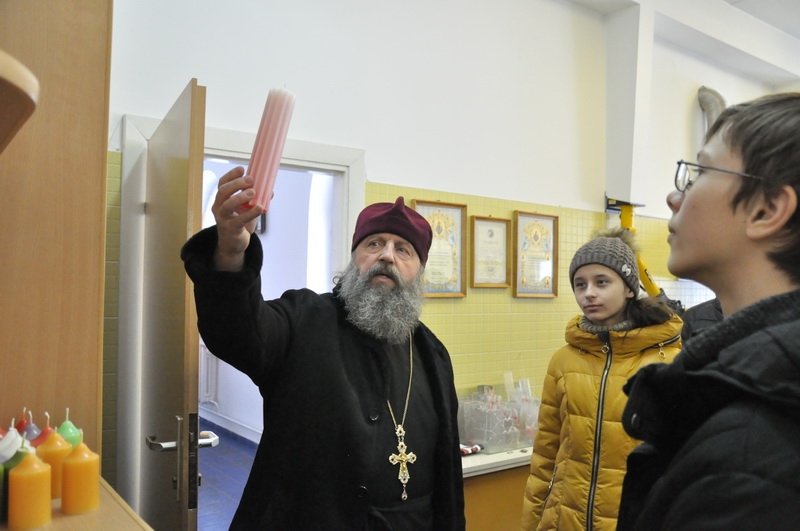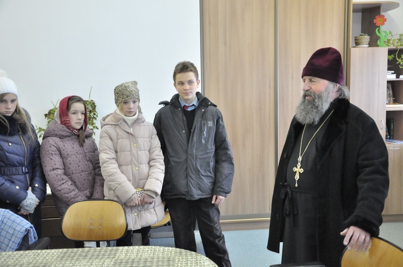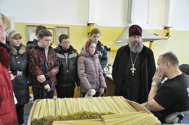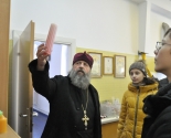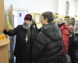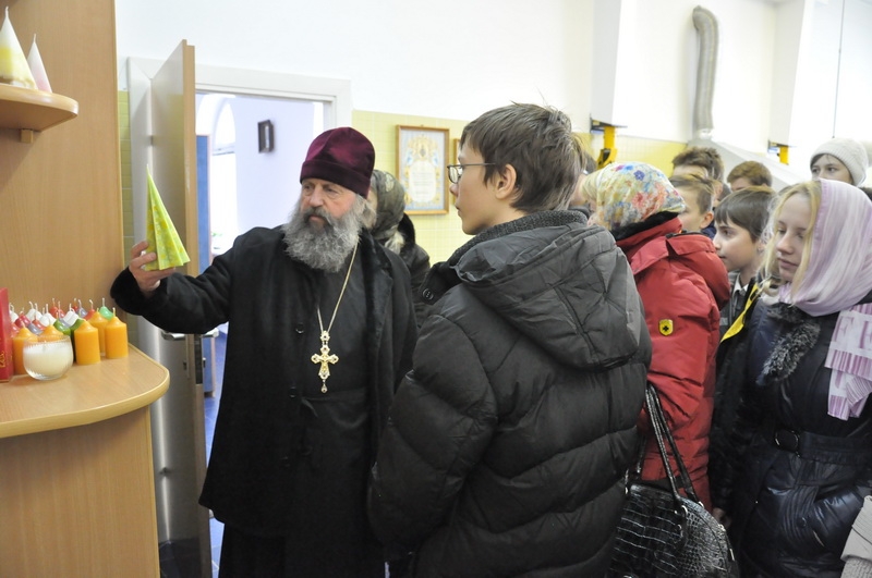 Беседу о вере, об устройстве храма и экскурсию для учащихся провёл настоятель прихода протоиерей Игорь Коростелёв. Дети побывали в Свято-Евфросиниевской церкви, посетили строящийся конкафедральный собор «Всех скорбящих Радость», учебный корпус, социальные мастерские для людей с ограничениями здоровья, где дети увидели, как делаются игрушки из дерева, шьётся облачение, отливаются свечи, изготавливается мыло и различные сувениры.