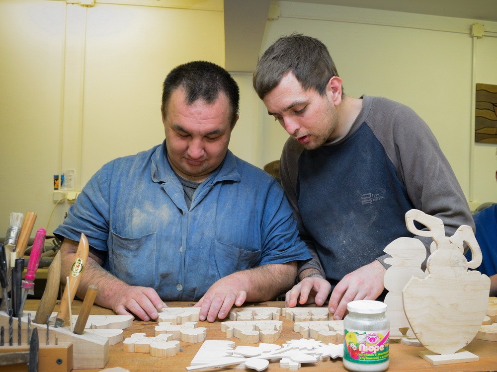 После летних месяцев снова наполнились жизнью коридоры корпуса приходских мастерских для людей с ограниченными возможностями, застучали станки, шумно наперебой обсуждаются новые идеи изделий, из шкафов достаётся инструмент, материалы.