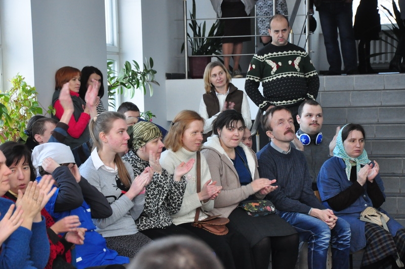 После экскурсии по Социальным мастерским волонтёры в благодарность организовали для сотрудников Мастерских концерт. По словам Ульяны Рудович, среди волонтёров много талантливых людей, которые хорошо поют и танцуют и которые рады поделиться своим творчеством.