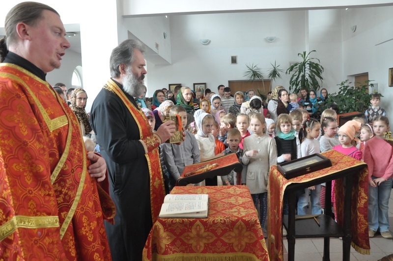 Богослужение в домовой церкви в честь мучеников Младенцев Вифлеемских прихода иконы Божьей Матери "Всех скорбящих Радость" возглавил протоиерей Олег Шульгин в сослужении директора воскресной школы протодиакона Ярослава Близнюка.