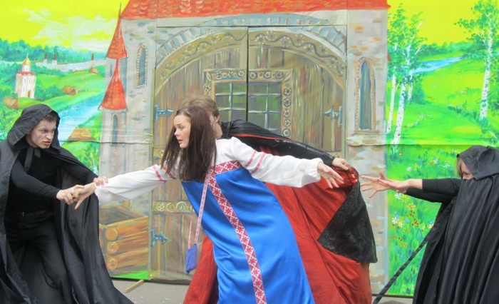 В Чеховщине выступление состоялось на открытой площадке. Несмотря на ненастную погоду, молодые люди отыграли спектакль с большой самоотдачей и продемонстрировали своё мастерство сполна, выполнив многочисленные акробатические и силовые элементы.