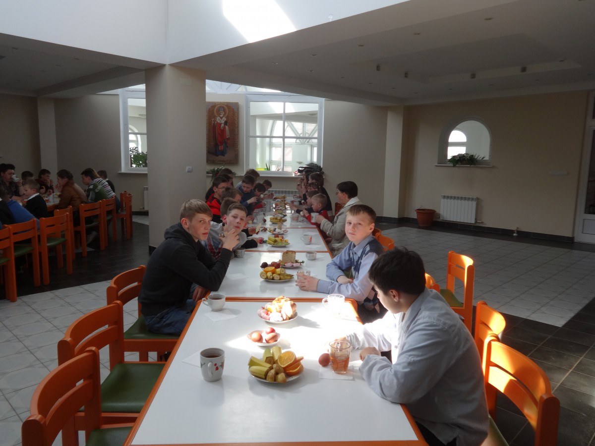 Затем был традиционный сладкий стол и активные игры на свежем воздухе. Старшая группа воспитанников интерната отправилась на импровизированный полигон, где развязался страйкбольный бой, а для младших была организована познавательная пасхальная викторина.