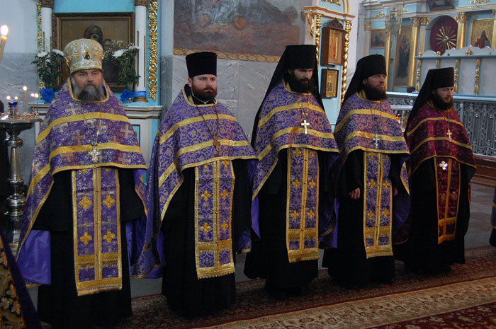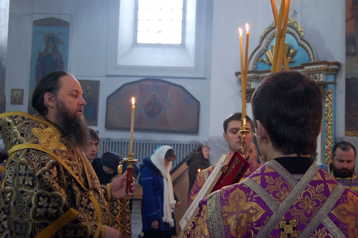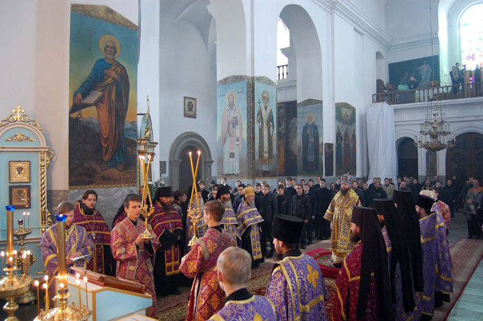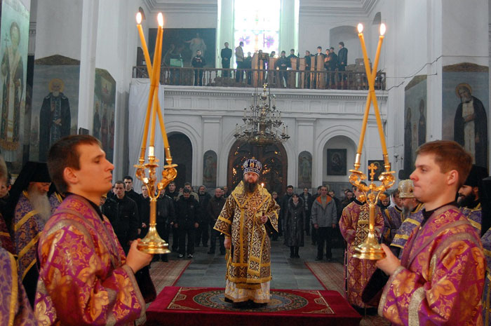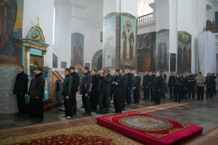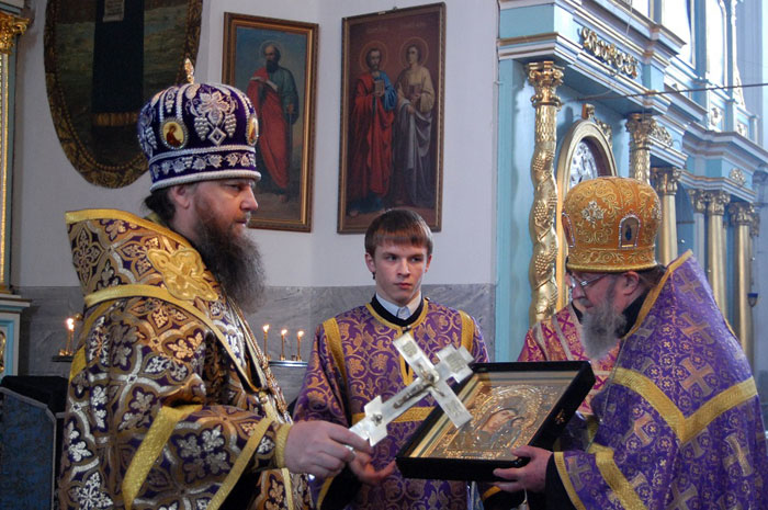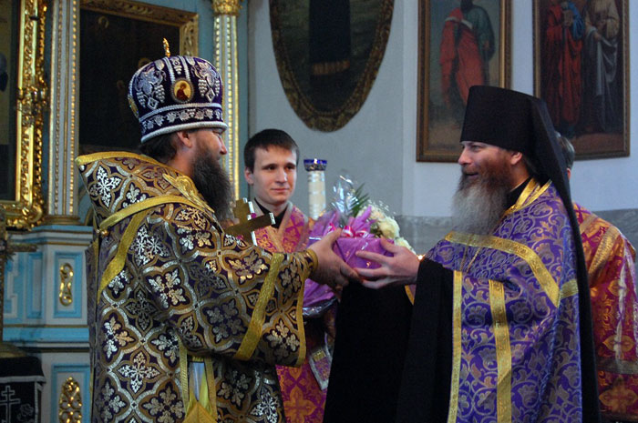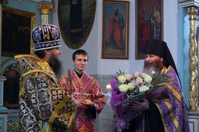 | 9 МАРТА 2010 (Вторник) 23:53:01 В Свято-Успенском Жировицком монастыре собрались в Успенском храме, чтобы поздравить своего духовного пастыря Архиепископа Новогрудского и Лидского Гурия с двадцатилетием его наместнического служения в монастыре. Духовник обители архимандрит Феодосий (Повный) предподнёс в подарок икону Божией Матери Казанскую, а инспектор Духовной Семинарии и Академии игумен Павел (Темафиенков) в свою очередь от лица всех учащих и учащихся вручил архипастырю букет роз и подарок запакованный в красочную упаковку, со словами благодарности за служение./ sobor.by/ Владислав Гурин. Фото: В. Гурин(просмотров 3130) |