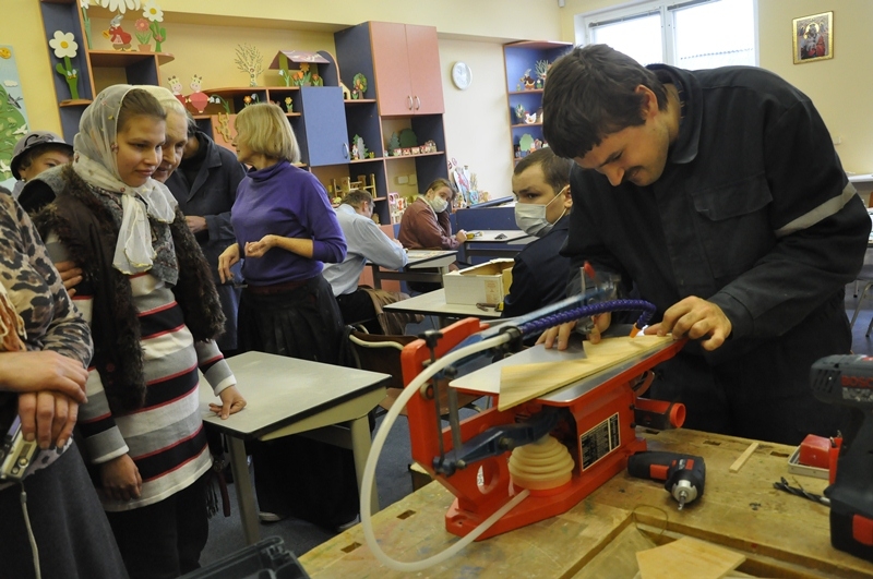 Участники клуба «Солнышко» для детей и совершеннолетних людей с ограничениями здоровья и их родителей, который действует при Центре социальной службы Борисовского благочиния, познакомились с деятельностью социальных мастерских прихода Иконы «Всех скорбящих Радость». Об истории создания мастерских и методах работы гостям рассказал настоятель прихода протоиерей Игорь Коростелёв, который отметил, что важно делать акцент не собственно на трудовой занятости людей с ограничениями, а на их всестороннем развитии. С этой целью здесь организованы занятия по развитию творческих способностей; протоиерей Алексей Климов каждый четверг преподаёт уроки Закона Божьего; сотрудники каждую неделю присутствуют на Божественной литургии. В мастерских есть свой хор, созданы условия для развития других творческих способностей. Большое внимание уделяется паломническим и образовательным поездкам, посещениям театров и музеев.