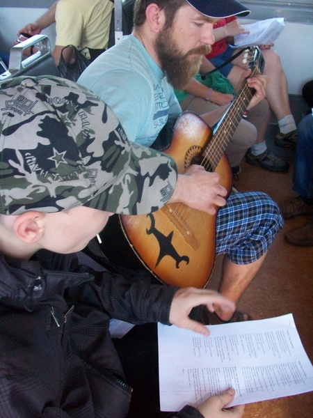 - Спявалі мы песні з дзіцячых мультфільмаў, а таксама творы гурта NRM, Цоя ды іншых, - кажа Павел. - Лідэрам спеваў сталі “Тры чарапахі” NRM і песня на верш “Люблю” Канстанцыі Буйло - дзеці падпявалі і прасілі іх зноў і зноў. Нават пасажыры падстуквалі ў такт.