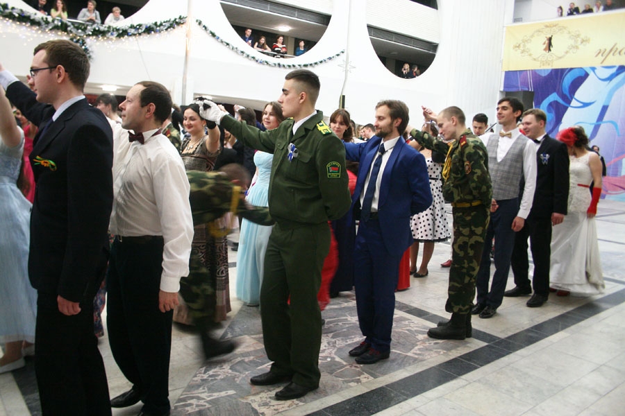 Бал включал в себя 3 танцевальных отделения: под музыку оркестра "Немига" пары кружились в танцах европейской программы (вальсы-венский, фигурный, медленный, танго, квикстеп, блюз), народное отделение прошло в компании фольклорно-этнографического ансамбля "Неруш", а после перерыва начались танцы народов мира (греческий, сербский, румынский, скандинавские танцы).