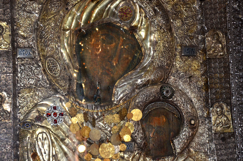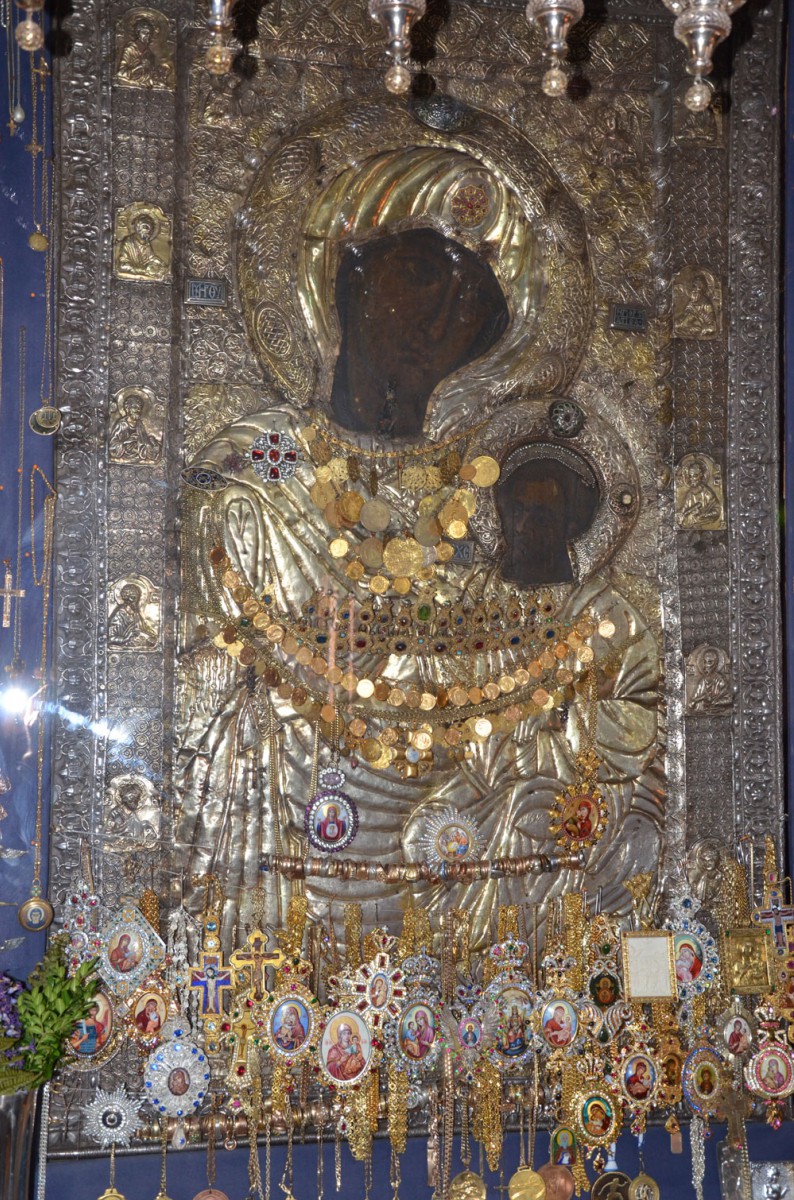| 20 МАРТА 2013 (Среда) 00:51:00 Съемочную группу sobor.by милостью Божией благословили сфотографировать главное сокровище монастыря Иверон на Святой Горе Афон: икону Богородицы «Портаитисса» (Вратарница), именуемую также «Иверская». Она чудесным образом приплыла в Иверский монастырь по морю и афонские иноки верят, что в последние времена она покинет монастырь, после чего и монахи должны будут уйти отсюда. Справка по материалам iveron.ru: История Иверской иконы просматривается с первого века, когда по неизреченной любви к людям Божия Матерь благословила святого апостола и евангелиста Луку написать её изображение ещё во дни Своей земной жизни. Преподобный Иоанн Дамаскин писал: «Святой апостол и евангелист Лука, в то время, когда Пресвятая Матерь Божия жила ещё в Иерусалиме и обитала в Сионе, написал живописными средствами Её Божественный и честный образ на доске, дабы, как в зеркале, созерцали её последующие поколения и роды. Когда Лука представил Ей сие изображение. Она сказала: «Отныне ублажат Мя все роды. Благодать и сила Рождшагося от Меня и Моя с вами да будет». Предание приписывает кисти святого апостола и евангелиста Луки от трёх до семидесяти икон Божией Матери, в том числе и Иверскую. Дальнейшая история этого образа просматривается с IX века времени иконоборческих гонений в Византии, когда по повелению императора почитателей икон подвергали истязаниям, пыткам, убивали, а сами иконы повсюду тщательно разыскивали, выкидывали из храмов и домов, рубили на куски, сжигали. Чтобы сберечь святыни от поругания и уничтожения, благочестивые люди прятали их, опускали в воды рек, морей, вручая их судьбу Воле Божией. Так случилось и с Иверским образом. В царствование императора-иконоборца Феофида (829-842) неподалёку от города Никее жила благочестивая вдова с сыном. У неё в доме была потаённая комната, в которой хранилась древняя икона Божией Матери. Ночами вдова молилась перед этим образом, бывшим для неё самым драгоценным сокровищем. Кто-то донёс на неё и однажды ночью в дом ворвались воины , один из них ударил икону мечем, желая изрубать её на куски. Удар пришёлся на изображение правой ланиты Пречистой, и из раны выступила кровь. Палачи испугались. Вдова на коленях стада умолять воинов пощадить икону и подождать до рассвета, пока она сможет собрать деньги на выкуп. Воины согласились, назвали огромную сумму для уплаты и не тронули икону, будучи смущёнными выступившей на ней кровью. Когда они ушли, вдова взяла святой образ и направилась с сыном к берегу моря. Долго молилась она и просила Царицу Небесную о милости к Её образу и о заступничестве за сына. Отпустив икону в воду, она с радостью заметила, что та не упала, а встала вертикально, ликом к берегу, и скользя по водам, стала удаляться, пока не скрылась из вида. Той же ночью мать умоляла сына уйти из дома, опасаясь за его жизнь. Сама же благочестивая женщина осталась принять муки за иконопочитание. Дальнейшая судьба вдовы неизвестна. Сын же её благополучно добрался до Афона и принял там постриг. От него и узнали монахи Святой Горы об истории древней иконы. Прошло много лет, но рассказ об иконе продолжал жить в преданиях афонских иноков. Принять к себе икону суждено было Иверскому монастырю, который был основан на стыке IХ-Х веков на Афоне благочестивым грузинским полководцем Торникием. Однажды, в огненном 