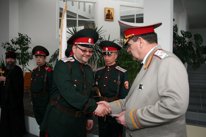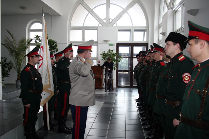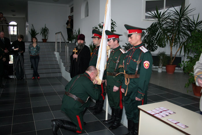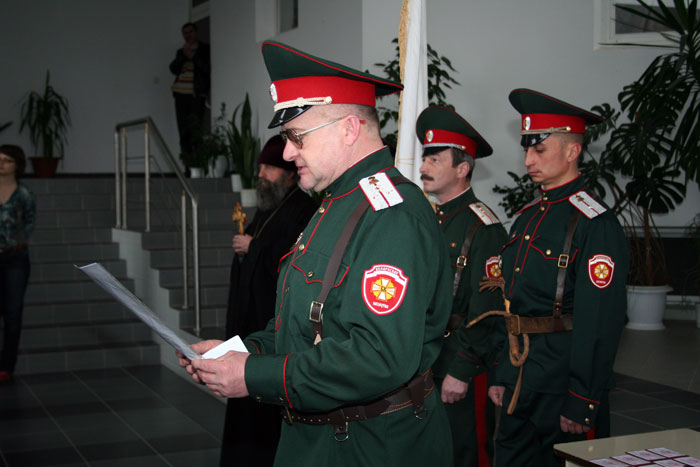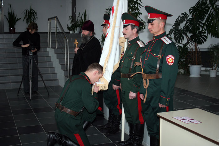 Присяга в рядах белорусского общественного объединения «Белорусское казачество» прошла в пасхальные дни в минском приходе иконы Божией Матери «Всех скорбящих Радость». Испытательный срок в полгода, обязательное собеседование со священником, рекомендация батюшки, православные ценности - это необходимые условия для того, кто желает именоваться казаком. Вообще присягу казаки в приходе принимают, по установившейся традиции, дважды в год - на Пасху и Покров. Наряду с высокими казачьими чинами на правах полноправного участника на торжестве - настоятель прихода, протоиерей Игорь Коростелев. Священник – единственный из белорусских клириков, кто по единогласному решению казаков вошел в Совет атаманов. «Думаю, что государство будет все более и более ценить казачество, делегировать вам послушания, службы, которые необходимы. Вы будете помогать стране развиваться, а также помогать в том, чтобы улицы наших городов вечерами были не опасны», - сказал в напутственным слове новобранцам отец Игорь. «Нас немного, но никто не говорит, что нас должны быть сотни. Главное – качество и понимание того, чему мы служим, Православие и воспитание подрастающего поколения», - сказал sobor.by походный атаман общественного объединения «Белорусское казачество» Юрий Ефимов. Радосте-Скорбященский приход активно взаимодействует с казачеством, начиная с 2002 года. Тогда Митрополит Минский и Слуцкий Филарет благословил настоятеля прихода нести послушание духовника объединения «Белорусское казачество». С тех пор отец Игорь регулярно проводит духовные беседы с казаками. Сейчас минские казаки по благословению Митрополита Минского и Слуцкого Филарета в столичном микрорайоне Степянка возводят храм Донской иконы Божией Матери. Минский зоопарк уже находится под охраной казаков. В одном из детских домов Минска действует казачий кадетский класс. А в конце прошлого года глава Администрации Президента Беларуси Владимир Макей заявил, что считает необходимым казачье движение в Беларуси. /sobor.by/ Марфа Шило (просмотров 5773)