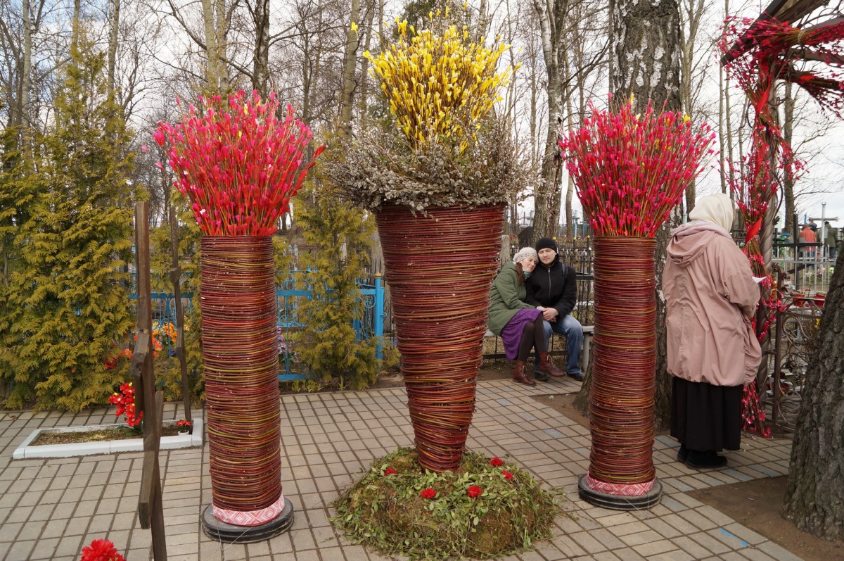 Вербы, береста, вазы из лозы. Паломники украсили место упокоения святой Валентины Минской