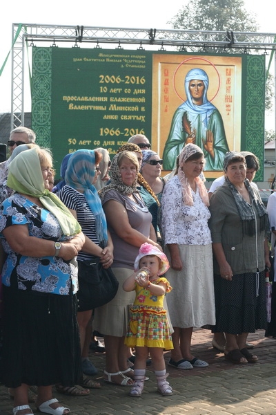 26 июля в Cвято-Никольском храме деревни Станьково и на месте упокоения святой блаженной Валентины Минской - на сельском кладбище деревни Крысово (Дзержинский район Минской области) - прошли юбилейные торжества, посвящённые 50-летию со дня кончины и 10-летию со дня прославления старицы в лике святых. Дата 26 июля была выбрана без привязки к каким-то событиям из жизни святой подвижницы. Напомним, память блаженной Валентины Минской отмечается 6 февраля - в день её упокоения (в 1966 году) и день причисления к лику святых (2006 год).