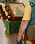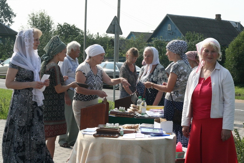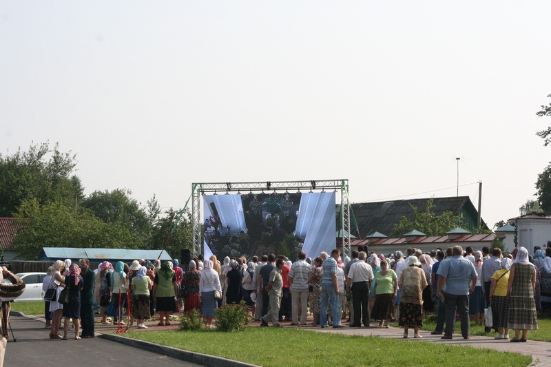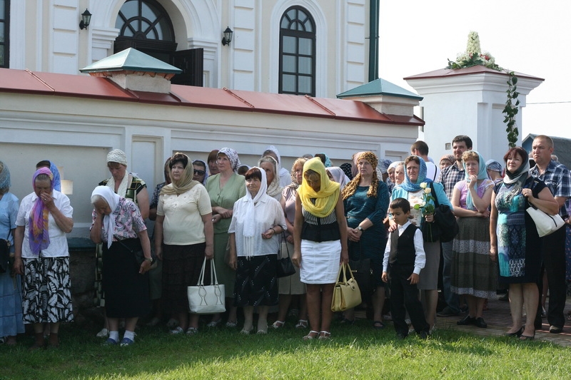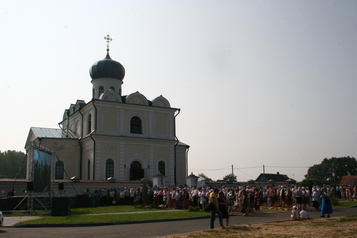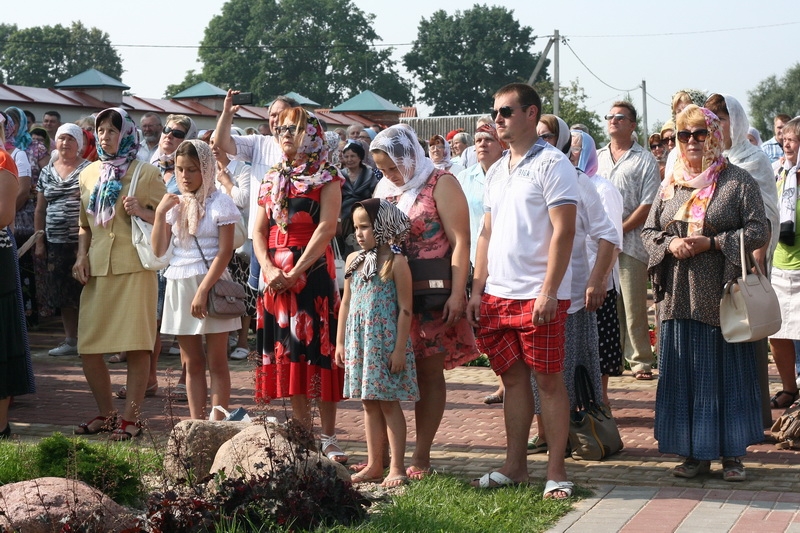На праздничные торжества в честь матушки Валентины прибыли паломники со всей Беларуси. Для удобства молящихся рядом с храмом был установлен экран с трансляцией архиерейской службы. Все желающие могли принять участие в таинствах исповеди и причастия, которые проходили как в храме, так и на улице.