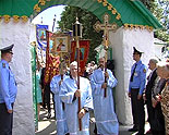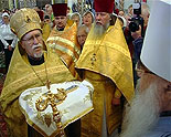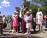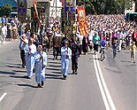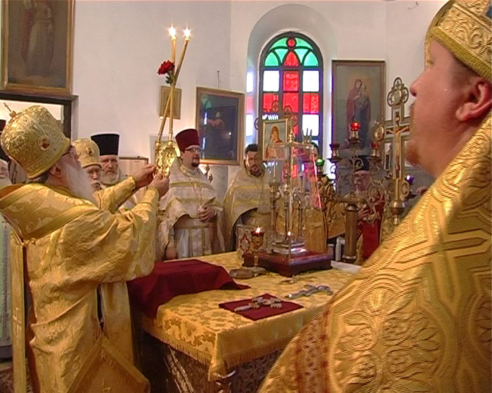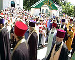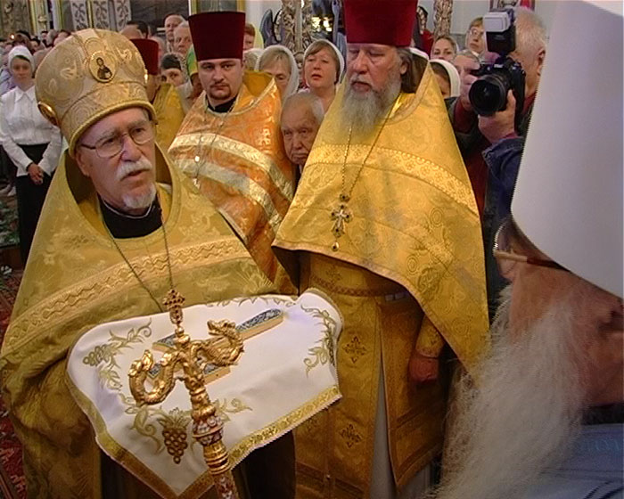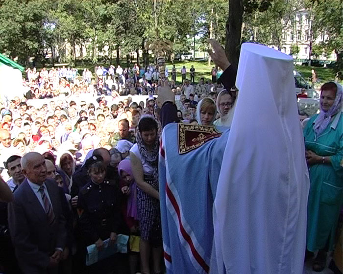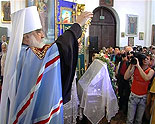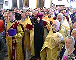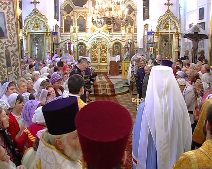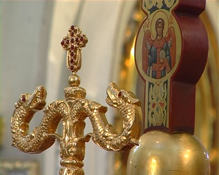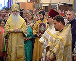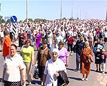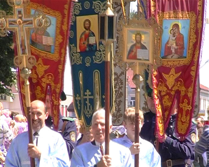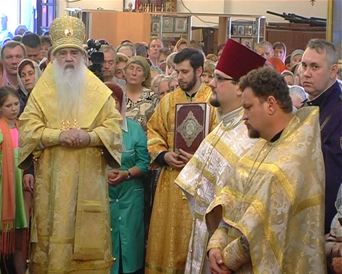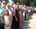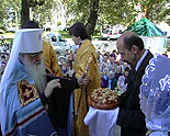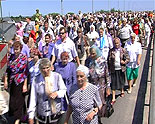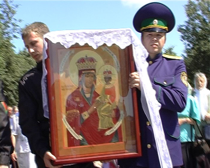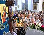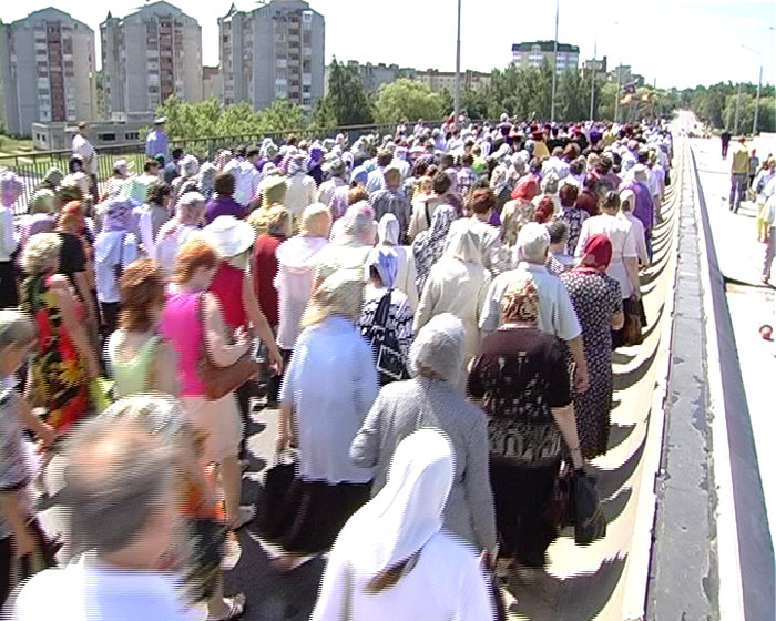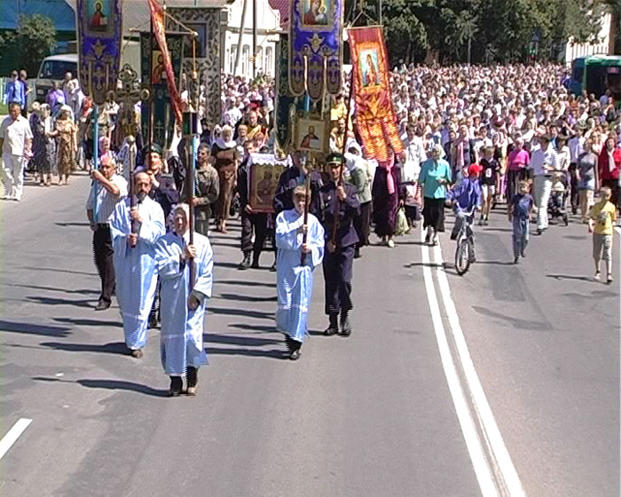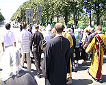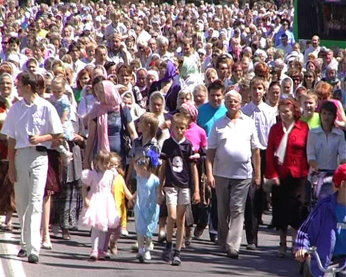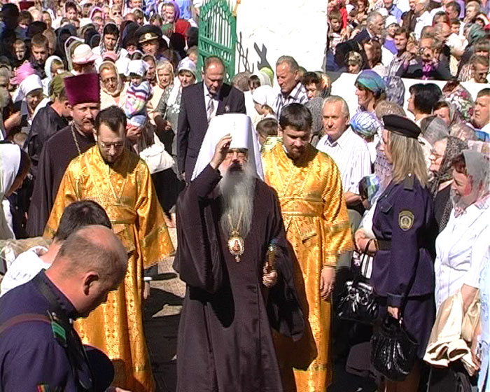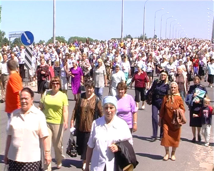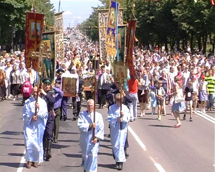 Митрополит минский и Слуцкий Филарет, возглавил Божественную литургию в Свято-Покровском храме, после которой от храма до Дворца культуры несколько тысяч верующих прошли крестным ходом. В районном Центре культуры и искусств были организованы выставки творческих работ различных коллективов Минской области. Владыка Экзарх посетил и благословил выставку икон работы художницы Ядвиги Сенько. Его Высокопреосвященство возглавил торжественное собрание и присутствовал на праздничном концерте в рамках закрытия акции «Семья - Единение - Отечество». Владыка Филарет обратился с приветственным адресом ко всем присутствующим и передал в дар жителям молодеченской земли экземпляр факсимильного издания Слуцкого Евангелия. От лица государственной власти всех участников духовно-просветительской акции приветствовал председатель Минского областного исполнительного комитета Борис Батура, передав в дар Патриаршему Экзарху репринтное издание Елизаветинского Евангелия. Со словами поздравления ко всем присутствующим обратился также Уполномоченный по делам религий и национальностей при Совете Министров Республики Беларусь Леонид Гуляко. Торжественное собрание и праздничный концерт предварял короткометражный фильм, рассказывающий об основных этапах проведения акции «Семья - Единение - Отечество». В концерте приняли участие различные выдающиеся творческие коллективы Молодеченского района и Минской области. / по материалам church.by/ (просмотров 7564)