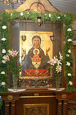 В Русской православной церкви сегодня совершается празднование иконы Богородицы «Неупиваемая Чаша» - престольный праздник в минском приходе в честь этой иконы. Праздничную литургию сегодня совершил Митрополит Минский и Слуцкий Филарет, Патриарший Экзарх всея Беларуси. Владыке сослужили секретарь Минской епархии протоиерей Николай Коржич, настоятель Свято-Духова кафедрального собора протоиерей Геннадий Дзичковский и настоятель прихода протоиерей Дионисий Пясецкий. Молодой минский приход пока не имеет своего храма и богослужения совершаются в жилом доме по адресу ул. Менделеева 4. Но в прошлом году было освящено место строительства нового большого храма в честь иконы Божией Матери, именуемой «Неупиваемая Чаша». Настоятель прихода, протоиерей Дионисий Пясецкий организовал при приходе пастырские беседы и психологические занятия для людей страдающих алкогольной и наркотической зависимостью. При приходе в 2010 году был открыт Христианский благотворительный фонд «Родители за трезвость», который ведёт активную работу с людьми, желающими избавиться от пагубных зависимостей. Три раза в неделю собираются группы для зависимых и созависимых людей, то есть их родственников. Также четыре раза в неделю при приходе собирается группа Общества анонимных алкоголиков «Спасительная Чаша» . Фонд «Родители за трезвость» ставит целью создание системы профилактики и преодоления различных видов зависимости путём объединения усилий специалистов разных областей: священников, медиков, психологов, педагогов и социологов. Явление первообраза иконы Божией Матери «Неупиваемая Чаша» произошло в 1878 году. О её явлении было открыто в троекратном чудесном видении одному крестянину, который первым и получил исцеление по молитве перед этим образом в женский Введенском Владычнем монастыре в Серпухове. С тех пор многие исцелялись от этого недуга по молитвам перед «Неупиваемой чашей». В 1929 году советские власти сожгли первообраз чудотворной иконы. И только 6 мая 1996 года, в Серпуховском Введенском Владычном женском монастыре, в месте явления первообраза в 19 веке, был освящен вновь созданный список святыни. «Одержимии пианственною страстию, получают исцеление, и из глубины сердца вопиют рожденному от Тебе Спасителю нашему: Аллилуиа» - поётся в Акафисте Пресвятой Богородице перед её иконой, именуемой “Неупиваемая чаша”. / sobor.by/ Матвей Родов (просмотров 20276)