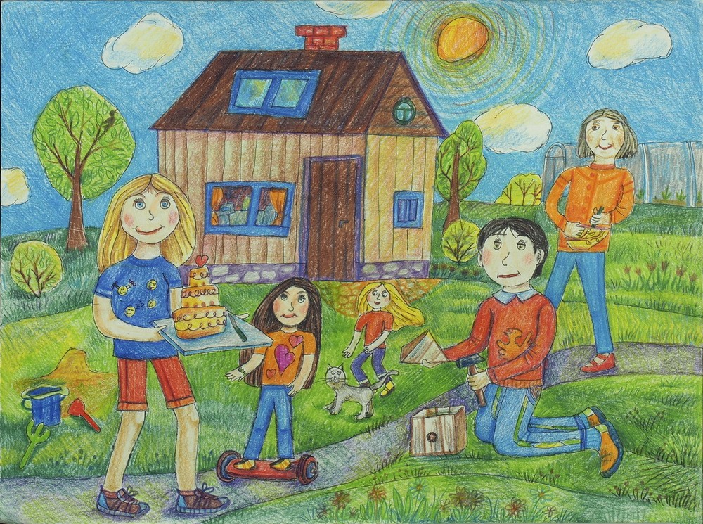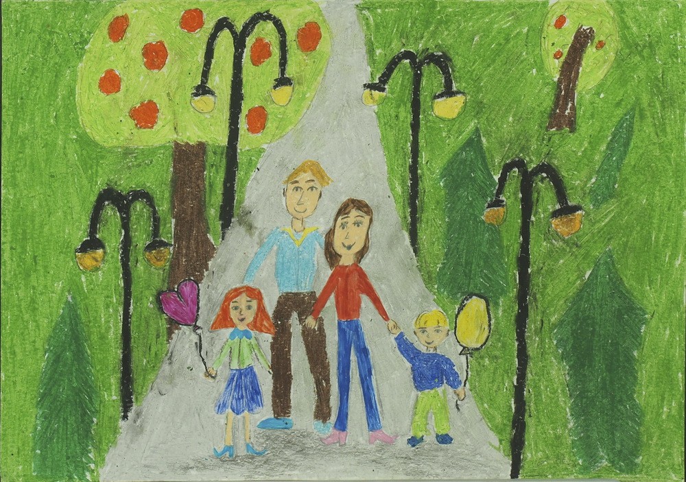 12) Саленик Анастасия, 10 лет, "Когда семья вместе, то и дождь нам в радость", ГУДО "Центр творчества детей и молодёжи Дзержинского района", преподаватель: Вайкшнарис О.А. (лауреат 3 степени)