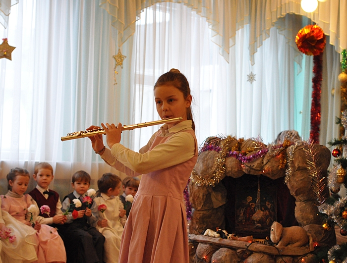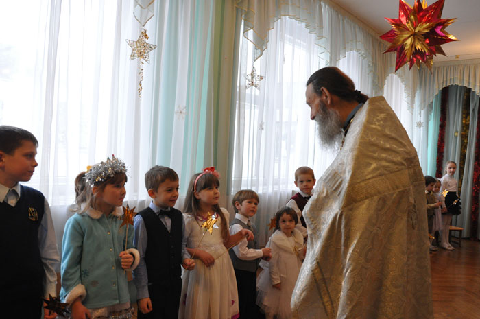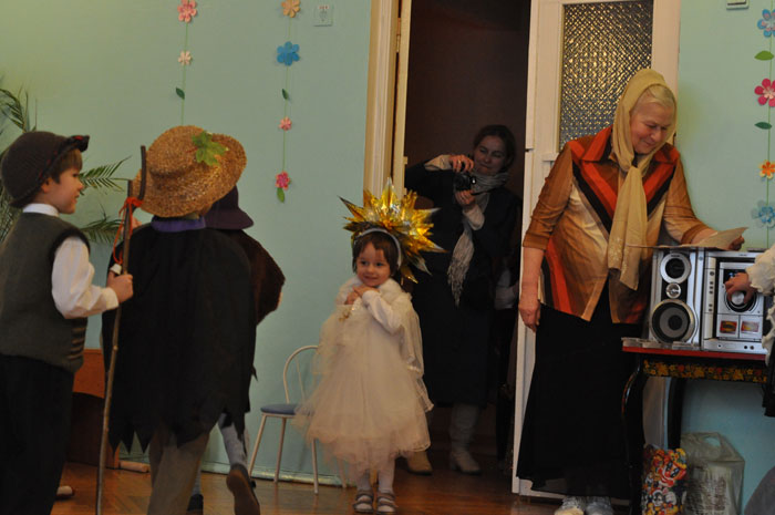 | 16 ЯНВАРЯ 2013 (Среда) 13:51:52 Рождественский праздник состоялся в группе с духовно-нравственным воспитанием на основе православных традиций белорусского народа детского сада № 532. Праздничное мероприятие по традиции началось с молебна - поздравить ребят и родителей пришёл клирик Свято-Покровского храма протоиерей Василий Дубойский. По традиции на рождественский утренник приходят не только родители воспитанников группы, но и выпускники - те , кто совсем недавно водил хороводы в этом же зале. Выпускники группы приходят с подарками - музыкальными номерами, показывают малышам, чему научились. Участие школьников в мероприятии имеет большое значение для маленьких ребятишек – у многих их них созревает желание учиться игре на том или ином музыкальном инструменте. Воспитанникам группы тоже было что показать - в их исполнении прозвучали рождественские стихи, песни-колядки. Родители могли посмотреть на маленьких актёров, которые выступали в роли ангелов, пастухов, волхвов и ведущей их Вифлеемской звёздочки. Ну, а завершился утренник по-зимнему весело - поздравить и одарить ребятишек пришёл самый настоящий Дед Мороз, который, как оказалось, тоже является носителем православных традиций -вместе с ребятами он спел тропарь Рождества и проверил, насколько хорошо они знают рождественские события. Ну, а ребята проверили, насколько хорошо бегает дедушка в своём почтенном возрасте. Воспитанники группы , их воспитатель и его помощник с нетерпением ждут второго воспитателя. Тел. для справок:+375 44 752 14 03 - Валентина Константиновна / sobor.by/ (просмотров 4954) |
