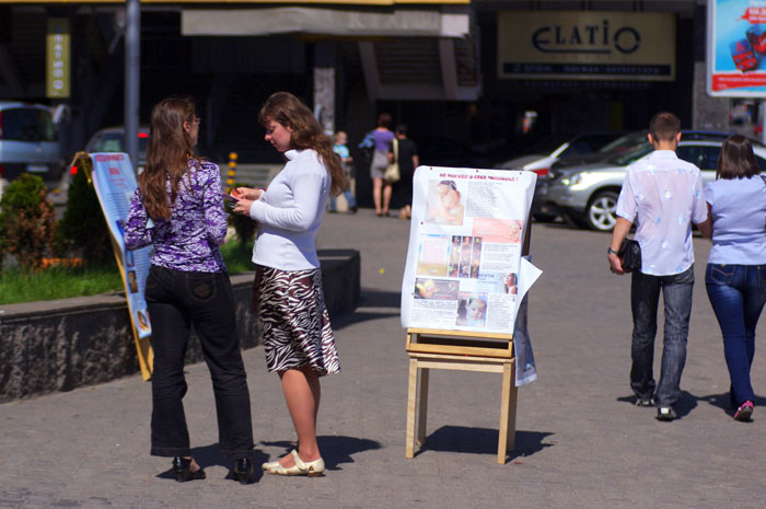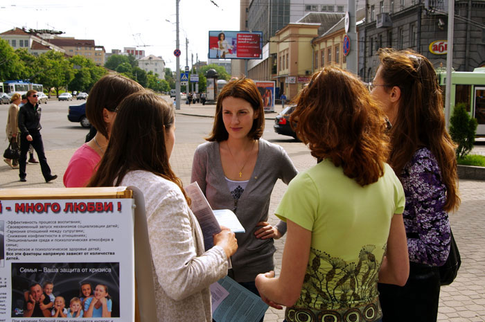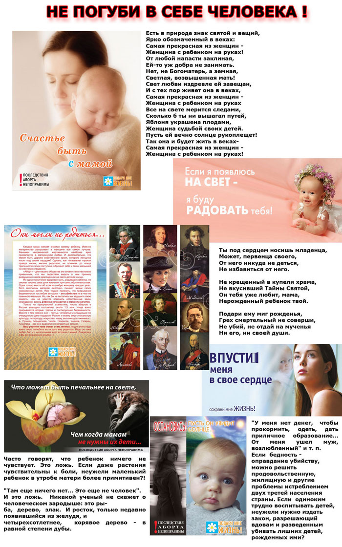 | | 30 МАЯ 2010 (Воскресение) 19:48:58 В центре белоруской столицы, на улице Немига, прошла акция в защиту жизни, организованная волонтерами прихода в честь святого Николая Японского, приуроченная к Международному дню защиты детей. На тротуаре были выставлены информационные стенды на темы «много детей-много любви», «когда начинается жизнь» и «не погуби в себе человека!». Православные волонтеры раздавали информационные брошюры и листовки на темы многодетности и абортов, целомудрия и контрацепции. Участники акции рассказывали прохожим, что «жизнь человека начинается с момента зачатия, аборт - посягательство на это неотъемлемое право жизни». «Мы - за жизнь и выступаем в защиту всех детей: и рожденных, и тех, кто еще только должен родиться!» с такими словами обращались волонтеры к молодым прохожим. Целью данного мероприятия, как заявляют организаторы, является привлечение внимание общества к проблемам защиты жизни детей, необходимости отказа от абортов, к сохранению жизни всех детей, формированию положительного отношения к многодетным семьям, деторождению. Главная цель акции была, как считает организатор акции матушка Вера Сердюк,– убедить как можно больше людей, что «без абортов можно!» / sobor.by/ Екатерина Шевелева (просмотров 5049) |