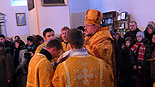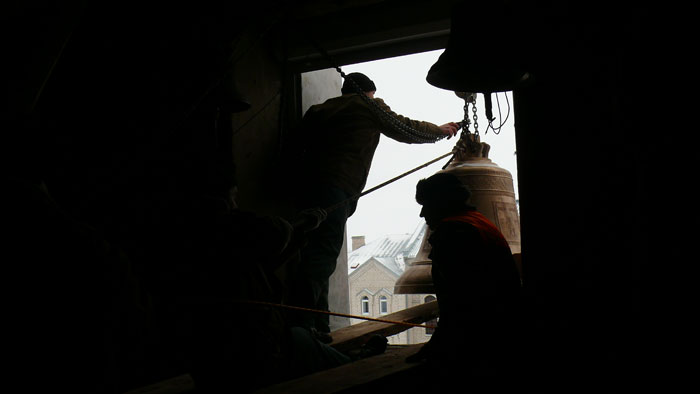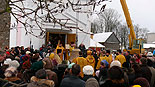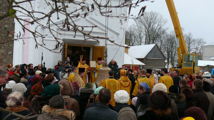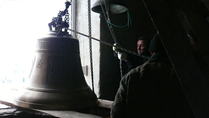Епископ Гродненский и Волковыский Артемий освятил 700 килограммовый колокол для Свято-Духовой церкви в посёлке Озёры Гродненского района. Благовестник, пожертвованный храму правлением сельскохозяйственного производственного кооператива «Озеры», был установлен на отреставрированной колокольне XVII века. За Божественной Литургией епископ Артемий наградил председателя СПК «Озёры» Александра Шишко орденом святителя Кирилла Туровского II степени за усердные труды по благо Церкви. «Колокол - страж души, пробуждающей к покаянию. Во многих храмах на Западе, в других конфессиях, на крыше церквей изображают петуха, в память о том, как апостол Петр трижды отрёкся от Христа, и услышав пение петуха, вспомнил слова своего Учителя и горько раскаялся, - рассказал епископ Артемий в проповеди, - такую же роль играет и колокол. Он пробуждает человеческую душу, а звон его, обращается в наше сердце. В эти дни Рождественского поста эта тема особенно актуальна, так как мы должны достойно подготовиться к Празднику Рождества Христова». Алескандр Шишко в интервью sobor.by рассказал, что во времена Первой Мировой войны колокола были сняты со звонницы и увезены в Россию, и утрачены. Благодаря решению СПК «Озёры» были выделены средства и отлит колокол, который стал вторым по величине в Гродненской епархии. Также председатель отметил, что благодаря энтузиазму настоятеля этого прихода иерея Юрия Гашко и трудами верующих построена и отреставрирована не только колокольня, но и построено здание воскресной школы. / sobor.by/Юлия Каптур (просмотров 5578)