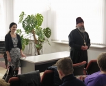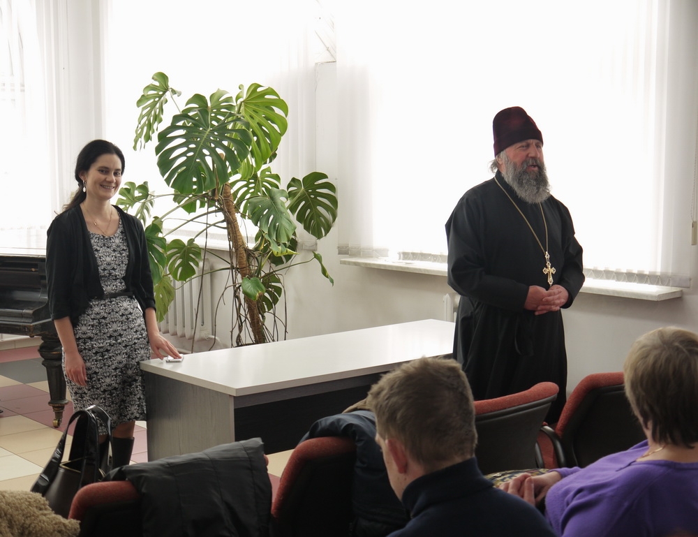 Настоятель прихода протоиерей Игорь Коростелёв сказал напутственные слова тем первокурсникам, которые уже с первых дней обучения решили окунуться в практическую работу. 30-летний опыт работы с детьми и взрослыми с умственными и физическими ограничениями позволил отцу Игорю сказать главное начинающим специалистам: в работе с особенными людьми выше педагогических технологий стоит любовь к человеку, именно она определяет успех тех усилий, которые вкладываются в ребёнка с тяжёлым заболеванием.