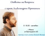 19 мая в братстве священномученика Владимира Хираско состоится встреча с протоиереем Александром Прониным19 мая в приходе иконы Божией Матери "Всех скорбящих Радость" города Минска состоится беседа с ответами на вопросы с духовником братства священномученика Владимира Хираско протоиереем Александром Прониным. ... (Просмотров 1590) Подробнее... |