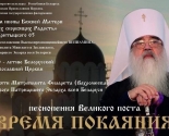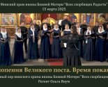 Серия хоровых концертов «Песнопения Великого поста. Время покаяния» завершилась выступлениями лучших белорусских хоров в Белгосфилармонии15,16 и 17 марта минчане и гости столицы могли насладиться душевными и проникновенными песнопениями Великого поста - по благословению Митрополита Минского и Заславского Вениамина, Патриаршего Экзарха всея Беларуси, при поддержке Синодального отдела Белорусской Православной Церкви по культуре и церковному искусству и прихода иконы Божией Матери "Всех скорбящих Радость" города Минска состоялись Великопостные концерты "Время покаяния". ... (Просмотров 1338) Подробнее...