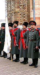 В минском Радосте-Скорбященском приходе состоялась казачья присяга Присяга в рядах белорусского общественного объединения «Белорусское казачество» прошла в пасхальные дни в минском приходе иконы Божией Матери «Всех скорбящих Радость». Испытательный срок в полгода, обязательное собеседование со священником, рекомендация батюшки, православные ценности - это необходимые условия для того, кто желает именоваться казаком. Вообще присягу казаки в приходе принимают, по установившейся традиции, дважды в год - на Пасху и Покров. Наряду с высокими казачьими чинами на правах полноправного участника на торжестве - настоятель прихода, протоиерей Игорь Коростелев. Священник – единственный из белорусских клириков, кто по единогласному решению казаков вошел в Совет атаманов. «Думаю, что государство будет все более и более ценить казачество, делегировать вам послушания, службы, которые необходимы. Вы будете помогать стране развиваться, а также помогать в том, чтобы улицы наших городов вечерами были не опасны», - сказал в напутственным слове новобранцам отец Игорь. «Нас немного, но никто не говорит, что нас должны быть сотни. Главное – качество и понимание того, чему мы служим, Православие и воспитание подрастающего поколения», - сказал sobor.by походный атаман общественного объединения «Белорусское казачество» Юрий Ефимов. Радосте-Скорбященский приход активно взаимодействует с казачеством, начиная с 2002 года. Тогда Митрополит Минский и Слуцкий Филарет благословил настоятеля прихода нести послушание духовника объединения «Белорусское казачество». С тех пор отец Игорь регулярно проводит духовные беседы с казаками. Сейчас минские казаки по благословению Митрополита Минского и Слуцкого Филарета в столичном микрорайоне Степянка возводят храм Донской иконы Божией Матери. Минский зоопарк уже находится под охраной казаков. В одном из детских домов Минска действует казачий кадетский класс. А в конце прошлого года глава Администрации Президента Беларуси Владимир Макей заявил, что считает необходимым казачье движение в Беларуси. /sobor.by/ Марфа Шило