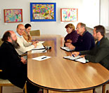 После молебна о путешествующих, семь сотрудников наших мастерских во главе с руководителем мастерских Александром Егоренко и руководителем учебных мастерских Мариной Кравцовой, отбыли на 7 дней в г. Билефельд (земля Северный Рейн-Вестфалия, Германия). В рамках подписанного соглашения о сотрудничестве между объединением мастерских для людей с умственными и физическими ограничениями Бодельшвингской организации Бетель и приходскими мастерскими регулярно устраиваются семинары по работе с людьми с ограничениями. В программе пребывания наших сотрудников в Бетеле также переговоры о кооперации мастерских и составление программы второго посещения Германии группой сотрудников наших мастерских с ограничениями в сентябре 2004 года.