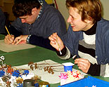После средневекового уикенда наступили современные будни, которые принесли новые впечатления. Гости из Биллефельда заняли рабочие места рядом с белорусскими коллегами, которые организовали мастер-классы для своих немецких друзей. Вместе они трудились в столярной, швейной, свечной мастерских. Николай Гринь свой мастер-класс предварил презентацией работ «Животные мира», выполненных из скульптурного пластилина. Надо сказать, что этот ход оказался удачным. Занятие Николая оказалось самым востребованным.