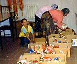 К небольшому разочарованию организаторов сегодня пришло лишь три семьи, в которых дети и родители действительно нуждаются в оказании материальной и социально-реабилитационной помощи. Работа Центра направлена на всю семью, но сотрудники центра привыкли к тому, что сначала, возможно, придет кто-то один. Так, всех очень обрадовал приход второклассника Владика. Мама не смогла оторваться от сериала, но мальчик решился и пришел. Он будет ходить и заниматься, а со временем, надеется привести на занятия и маму…