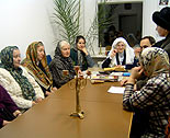 Гостьей семинара стала руководитель социальных мастерских прихода иконы «Всех скорбящих Радость» кандидат психологических наук Марина Кравцова, которая рассказала о приходском опыте работы с людьми с тяжёлыми физическими и умственными нарушениями. При приходе созданы социальные мастерские, где органиованы рабочие места для инакоодарённых людей. Ребята проходят обучение, а затем работают в швейном, вязальном, столярном, свечном производствах, а также в библиотеке и на кухне. Марина Викторовна отметила, что слишком много внимания порой уделяется болезни и диагнозу, в то время как любовь Божия позволяет преодолеть многое.