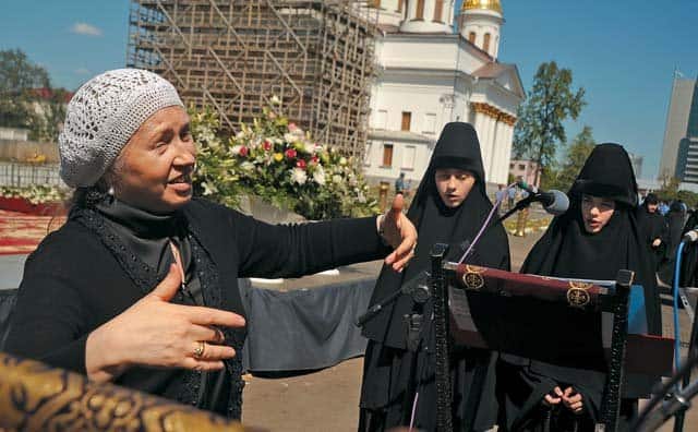 После ухода из театра я два года работала в Центре оперного пения Галины Вишневской, где и познакомилась с сестрами из Ново-Тихвинского монастыря. Точнее, они меня нашли. Певческому послушанию был необходим педагог по вокалу высокого профессионального уровня, и они искали учителей через интернет и так вышли на сайт нашего Центра. Вы знаете, когда монах чего-то захочет, он обязательно будет молиться и искать, пока не найдет. И вот сестры приехали в Москву, пришли в Центр Вишневской. В этот момент из преподавателей никого, кроме меня, не было. Заведующий учебной частью пришел ко мне в класс. Он распахнул дверь со словами: «Галина Ивановна, к Вам монахини!» Я немного растерялась, говорю: «Здравствуйте…» Сестры посидели на моем уроке, я с ними немного позанималась, и они тогда же пригласили меня в монастырь… Я согласилась. Съездила один раз в Екатеринбург, мне понравилось, стала приезжать чаще, раз в два месяца почти на три недели. Жила в монастыре, мы работали, я уезжала, потом возвращалась вновь. А в 2004 году мы с мужем переехали в Екатеринбург насовсем, и я стала работать в монастыре постоянно.