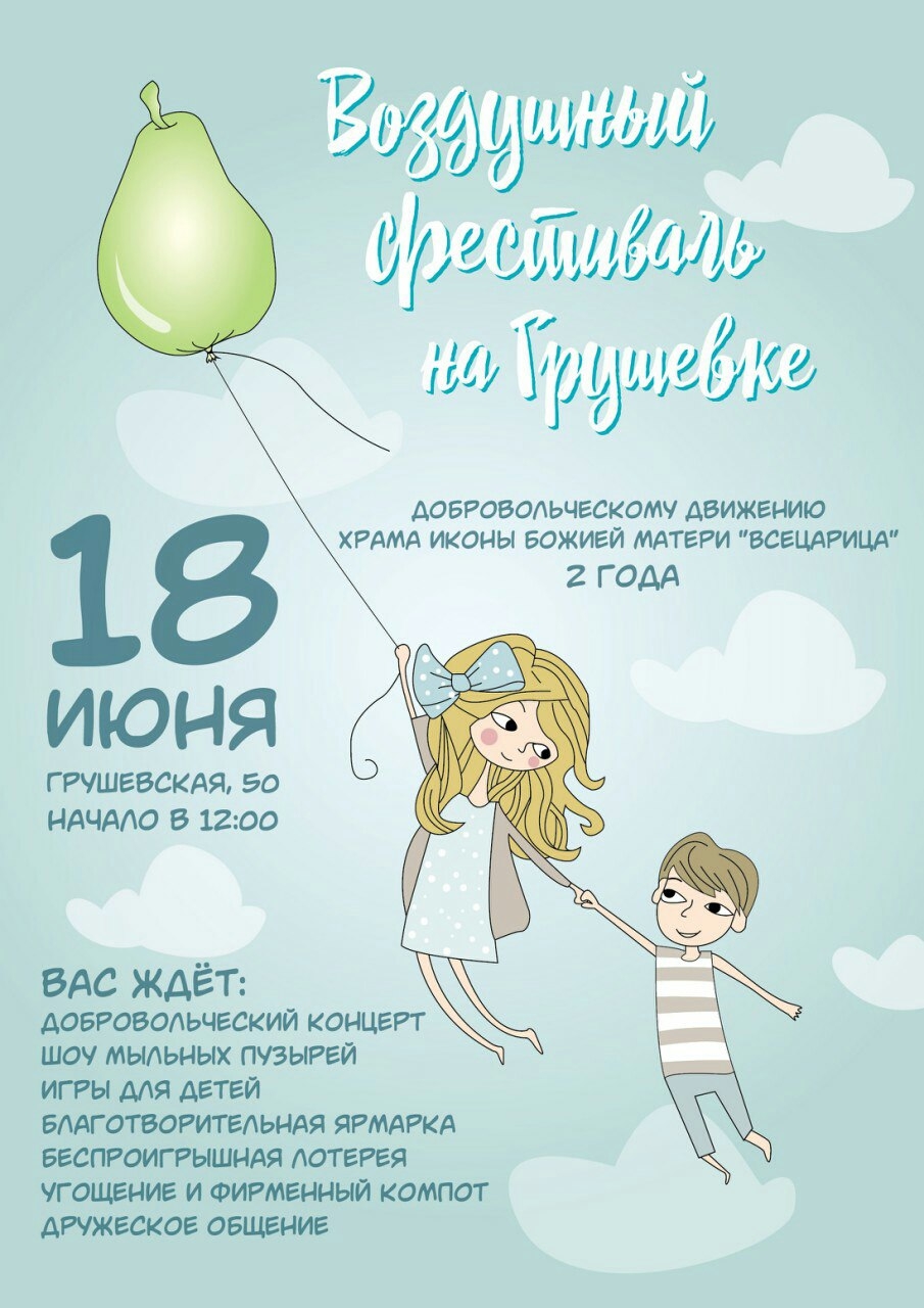 | | 14 ИЮНЯ 2017 (Среда) 11:41:05 В июне Добровольческому движению минского храма в честь иконы Божией Матери "Всецарица" исполняется 2 года. Приход храма приглашает всех отметить это радостное событие 18 июня на Воздушном фестивале на Грушевке (Минск, ул. Грушевская, 50).