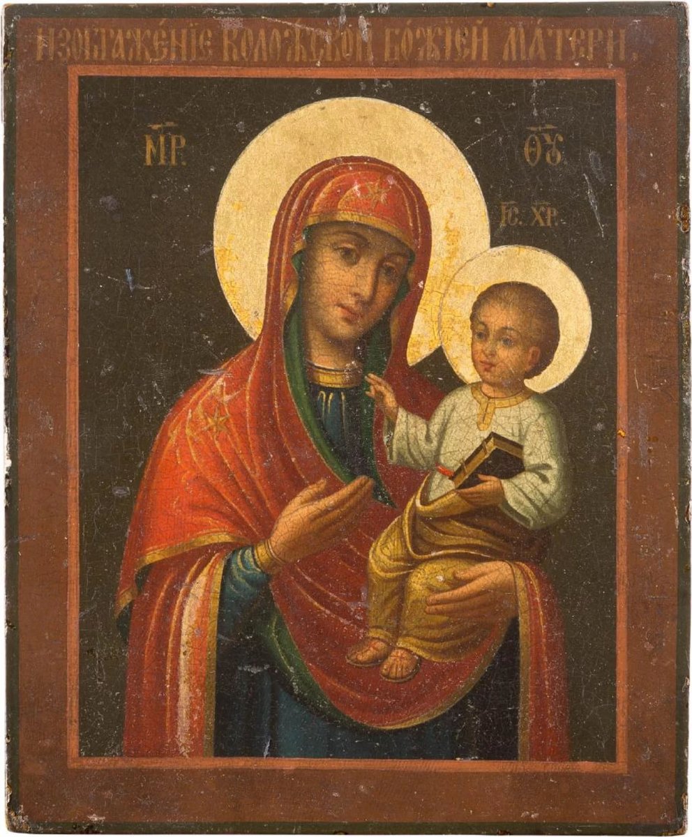 | 1 МАЯ 2024 (Среда) 13:35:39 Икона Божией Матери "Коложская" — чудотворный образ Пресвятой Богородицы, получивший свое название по местонахождению в храме святых мучеников благоверных князей Бориса и Глеба города Гродно, который именуется также Коложской церковью.Первое упоминание об иконе относится к 1661 году в связи с похищением ее из Борисоглебского монастыря во время русско-польско-шведской войны. К этому времени почитание Коложской иконы как чудотворного образа Пресвятой Богородицы прочно вошло в традицию благочестия как местного населения, так и далеко за пределами гродненского края. Это свидетельствует о более раннем происхождении иконы. Некоторые исследователи связывают ее с существовавшей в первой половине XVI века при Коложской обители иконописной мастерской. Сохранившееся предание о ее появлении в храме на Коложе гласит: "Говорят старые люди, что какой-то нищий всегда носил с собой, по обету, этот образ Пресвятой Богородицы. С приближением смерти ему в видении было объявлено, чтобы он этот образ поместил в Коложской церкви, что было им выполнено, и сам изъявил желание быть погребенным в этой церкви". Находилась Коложская икона Божией Матери у Царских врат с левой стороны в самом гродненском храме святых мучеников благоверных князей Бориса и Глеба. Согласно описаниям очевидцев, икона была небольшого размера ("в четверть листка"). Писана на медной доске, помещенной в кипарисовую оправу. Оклад украшен горным хрусталем. Оправлена в серебряную с позолотой ризу, которую украшали 14 камней граната ("чешские камни"), на полях – чеканные ветхозаветные изображения. По бокам две маленькие занавески с розовой опушкой. Лик Богородицы был увенчан двумя маленькими серебряными коронами с позолотой. 3 октября 1854 года, вскоре после трагического обвала стены Коложской церкви, икона с торжественным крестным ходом была перенесена в центр города Гродно в новоустроенный и освященный храм Борисо-Глебского монастыря. Коложская икона Божией Матери. 2-я пол. XIX в. Национальный музей в Кракове (Польша) За два с лишним столетия икона прославилась многочисленными чудесами и исцелениями. За помощью к ней шли люди из близких и дальних мест. Существовала традиция чтения перед Коложской иконой канона и акафиста Божией Матери на пятничном вечернем богослужении. В летописи Борисоглебского мужского монастыря имелись сообщения о чудесных исцелениях. На летопись ссылается епископ Иосиф (Соколов), приводя рассказ исцелившегося в 1889 году от болезни ног жителя Гродненской губернии. Коложская икона прославилась самыми различными чудесами. Одно из самых масштабных, произошедших по молитвам гродненцев перед этим образом, сохранили мемуары и публикации начала ХХ века. Когда после объявления Первой мировой войны кайзеровские войска вплотную подступили к Гродно, среди солдат и горожан началась паника. Однако архиепископ Гродненский и Брестский Михаил (Ермаков) вместе с образом Коложской Божией Матери объехал гродненские форты со стороны, откуда ждали противника, после чего немецкое наступление чудесным образом остановилось. Случившееся очень подробно и детально описано в ряде публикаций того времени и источников, включая мемуары последнего протопресвитера русской армии и флота, уроженца Витебщины Георгия Ивановича Шавельского (1871-1951). После этих собы