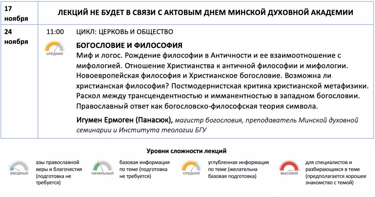 17 ноября лекций не будет в связи с актовым днём Минской духовной академии.