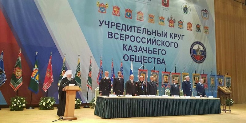 | 30 НОЯБРЯ 2018 (Пятница) 12:11:49 27 ноября в Москве в Храме Христа Спасителя, в Зале Церковных Соборов состоялся Учредительный круг Всероссийского казачьего общества.Его работу предварил молебен о призывании Святого Духа на всякое благое дело, который совершил митрополит Ставропольский и Невинномысский Кирилл, председатель Синодального комитета по взаимодействию с казачеством. Его Высокопреосвященству сослужили войсковой священник ВКО "Терское казачье общество" протоиерей Павел Самойленко, ответственный секретарь Синодального комитета по взаимодействию с казачеством иерей Тимофей Чайкин, духовенство Храма Христа Спасителя. Вместе с казаками молились атаманы войсковых казачьих обществ (ВКО), войсковые священники ВКО, сотрудники Синодального комитета, руководство, студенты и преподаватели МГУТУ им. К.Г. Разумовского. Перед началом богослужения митрополит Кирилл обратился к почти 500 делегатам 11 реестровых казачьих войск: "Сегодня по благословению Святейшего Патриарха Московского и всея Руси Кирилла мы собрались в главном соборе Русской Православной Церкви для участия в поистине знаменательном событии. Мы сейчас будем молиться Богу и молиться усердно, чтобы Он ниспослал благодать Святаго Духа на историческое решение – создание Всероссийского казачьего общества. Милостью Божией и общими трудами за 30 лет казачество смогло восстановиться, можно сказать, из небытия. Помолимся, чтобы Господь благословил потрудиться Всероссийскому казачьему обществу на благо нашего Отечества, для процветания честного казачества, защиты Православной веры, Русской Церкви". За богослужением пел Кубанский казачий хор, нередко приглашаемый на крупные мероприятия Синодального комитета по взаимодействию с казачеством. Так, 22 мая этого года, в Париже в Кафедральном соборе в честь Пресвятой Троицы пение знаменитого коллектива сопровождало Божественную литургию, которую возглавил в день памяти святителя Николая митрополит Ставропольский и Невинномысский Кирилл. По окончании молебна состоялось учредительное собрание (Круг) Всероссийского казачьего общества. Среди почётных гостей – помощник Президента РФ И.Е. Левитин; заместитель председателя правительства РФ, председатель межправительственной комиссии по делам казачества В.Л. Мутко; ВРИО Губернатора Санкт-Петербурга, председатель Совета при Президенте РФ по делам казачества А.Д. Беглов; председатель Следственного комитета РФ А.И. Бастрыкин; руководитель Федерального агентства по делам национальностей И.В. Баринов; начальник Управления Президента РФ по внутренней политике, ответственный секретарь Совета при Президенте РФ по делам казачества А.В. Ярин; митрополит Ставропольский и Невинномысский Кирилл; председатель Синодального комитета по взаимодействию с казачеством; первый заместитель министра внутренних дел РФ А.В. Горовой. В Зале Церковных Соборов присутствовали представители органов государственной власти, Русской Православной Церкви, атаманы и войсковые священники 11 ВКО, МГУТУ им. К.Г. Разумовского (Первый казачий университет), средств массовой информации. Громкие аплодисменты прозвучали, когда атаман ВКО "Кубанское казачье войско" Н.А. Долуда представил участникам учредительного круга С.В. Аксенова, Главу Республики Крым. Помощник Президента РФ И.Е. Левитин зачитал приве