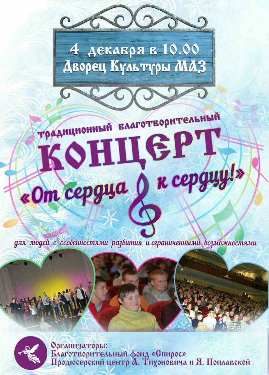4 декабря в ДК МАЗ - благотворительный концерт "От сердца к сердцу"