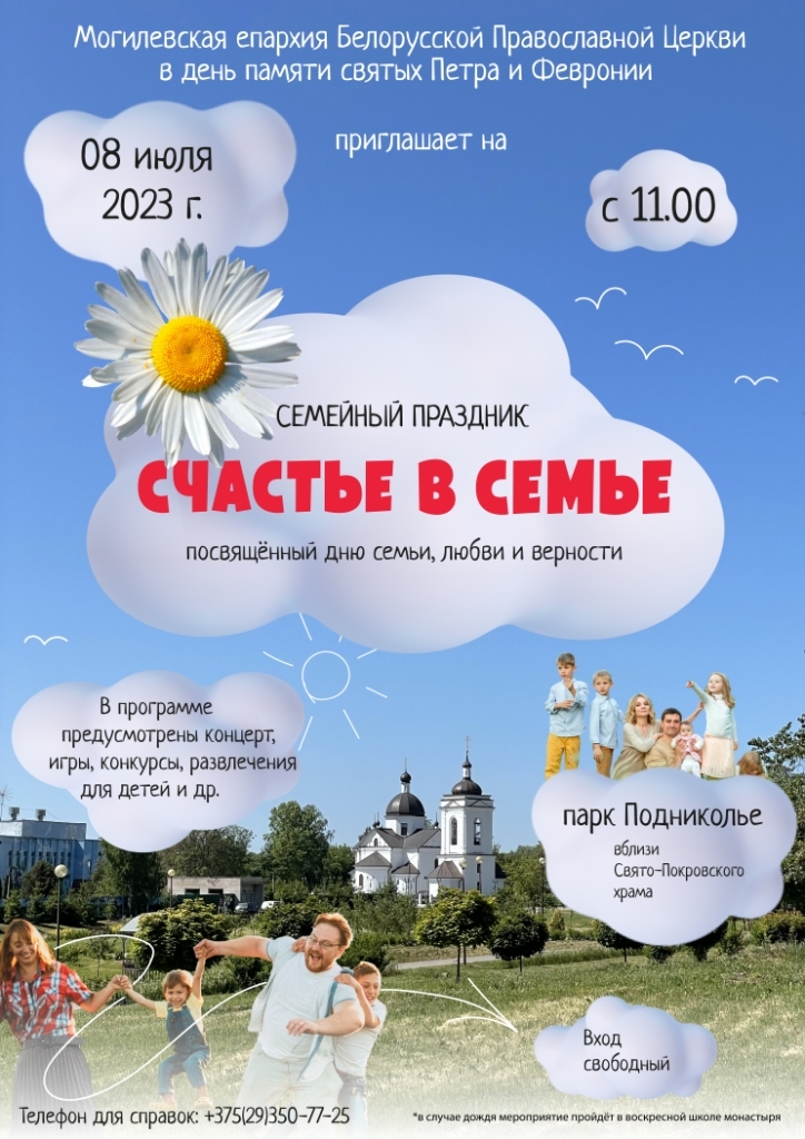 8 июля, в день памяти благоверных Петра и Февронии Муромских — День семьи, любви и верности, в Могилёве состоятся праздничные мероприятия и крестный ход за сохранение семейных ценностей. Сообщает Могилевская епархия.
