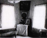 На фото: святая преподобная Манефа Гомельская, дом, в котором она жила, и её комната.