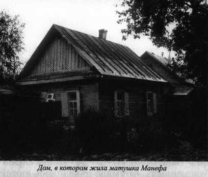 Схимонахиня Манефа совершала свой духовный подвиг со смирением и благочестием. Закрытие властями монастыря в послевоенные годы поставило праведницу на грань выживания. Она вернулась в родительский дом без каких-либо средств к существованию, в состоянии прогрессирующей неподвижности. Случались дни, когда на её столе не было ничего, кроме подогретой воды. Страдания не повергли схимницу в отчаяние. Блажен, кто пребывает в Боге, кого Он избрал и приблизил, зримо свидетельствуя о том, как "сила Божия в немощи совершается” (2 Кор. 12,9). Господь послал к ней на постой трёх монахинь и бывшего фронтовика, вскоре принявшего тайное монашество, затем рукоположенного в сан священника. Так сложилась своеобразная домашняя обитель, жившая по Христовым заповедям и помогавшая постигать их притекающим из ближних и дальних мест людям. Матушка Манефа душой прозирала глубину их нужд, печалей, скорбей, находя для утешений, спасительных наставлений, отводящих беду предостережений Боговдохновенные слова. Были они просты и понятны, потому что от избытка сердца говорили уста Праведницы. Это был язык Матери-Церкви, язык Христовой любви и света. В этом наглядное исполнение завета Спасителя: "Так да светит свет ваш пред людьми, чтобы они видели ваши добрые дела и прославляли Отца вашего Небесного” (Мф.5,16).