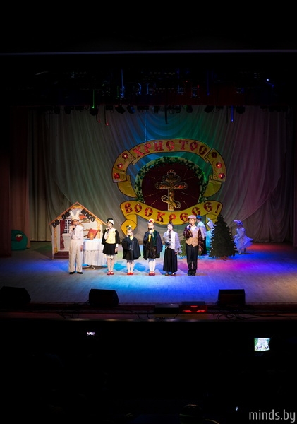 | | 2 МАЯ 2016 (Понедельник) 12:22:23 1 мая, в светлый праздник Пасхи Христовой, учащиеся Воскресной школы прихода храма в честь преподобномученика Серафима Жировичского в Слониме выступили в Доме культуры с праздничным концертом. Мероприятие посетил правящий архиерей, ректор Минской духовной семинарии архиепископ Новогрудский и Слонимский Гурий.