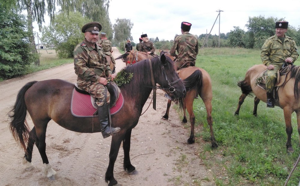 | 19 ИЮЛЯ 2018 (Четверг) 13:36:13 16-17 июля состоялся казачий конный поход, посвящённый 100-летию мученической кончины святых Царственных страстотерпцев, который проходил по территории Минского района. В походе приняли участие казаки из Жодинско-Смолевичского районного казачьего отдела, Витебска, Могилёва, а также казак из станицы Гатчинская Попов Александр Юрьевич.Организаторами мероприятия выступили РОО "Белорусское казачество", казачий генерал Николай Дмитриевич Улахович, казаки Жодинско-Смолевичского районного казачьего отдела при участии духовника "Белорусского казачества" протоиерея Игоря Коростелёва. В путь казаки выдвинулись от Центра верховой езды "Двор Старинки" города Вилейка, рассказал атаман Жодинско-Смолевичского районного казачьего отдела РОО "Белорусское казачество" подъесаул Жерносек Степан Евтифьевич. В числе 10 верховых и обозного казаки прошли более 50 километров до агрогородка Крайск, где расположились в палаточном лагере на ночлег. Завершился поход участием в Литургии в храме святителя Николая Чудотворца, а после - в крестном ходу и молебне у бюста святого страстотерпца царя Николая II. / sobor.by/ Фото РОО "Белорусское казачество" (просмотров 3394) |