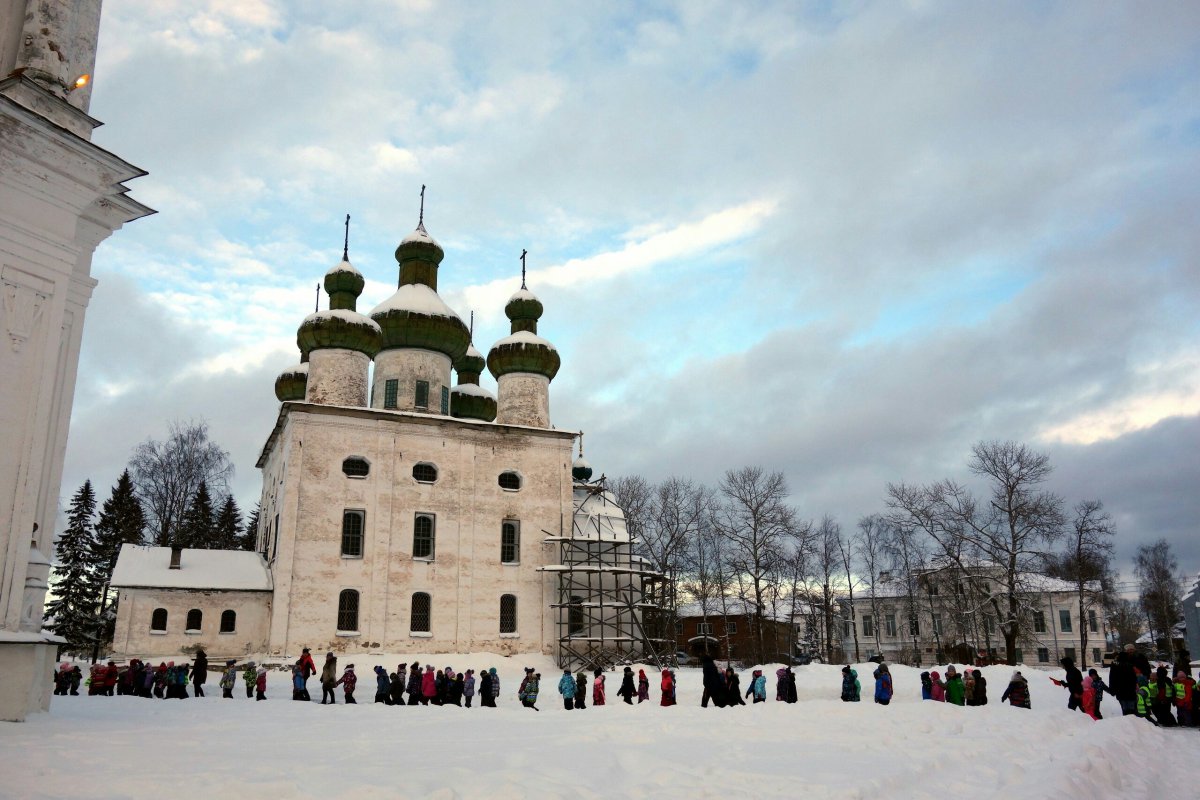 | 24 ЯНВАРЯ 2019 (Четверг) 14:59:03 17-19 января в городе Каргополь Архангельской области состоялся фестиваль колокольного искусства "Хрустальные звоны", в котором приняли участие белорусские звонари. Это единственный в России зимний колокольный фестиваль, приуроченный к празднованию Крещения Господня.Более 30 звонарей приехали, чтобы вместе создать и дополнять радостное настроение важнейшего христианского праздника. В их числе были и звонари из Беларуси: Андрей Дыдик, Виталий Михайлов и Дарья Шукало, которые делились белорусской традицией колокольного звона с другими участниками, а также обучали основам звона детей на мастер-классе в средней школе. Программа фестиваля также включала в себя выставку ледовых скульптур, представленную лучшими мастерами в своём деле, экскурсию по Соборной площади и исторической экспозиции музея, выставку графики Натальи Злотарёвой, мастер-классы по росписи глиняных колокольчиков и вечер знакомств для участников, где звонарь из Каргополя Сергей Власов поделился изобретением нового инструмента "коллохорд", который своим звучанием похож на металлофон и звон колоколов, а белорусские звонари делились народными белорусскими колядками. Весь фестиваль прошёл в тёплой атмосфере общей радости от праздника Крещения Господня, совместного общения и творчества, зимних пейзажей исторического города, древних церквей, окунания в проруби и невероятно красивых ледовых скульптур./ sobor.by/ (просмотров 1646) |